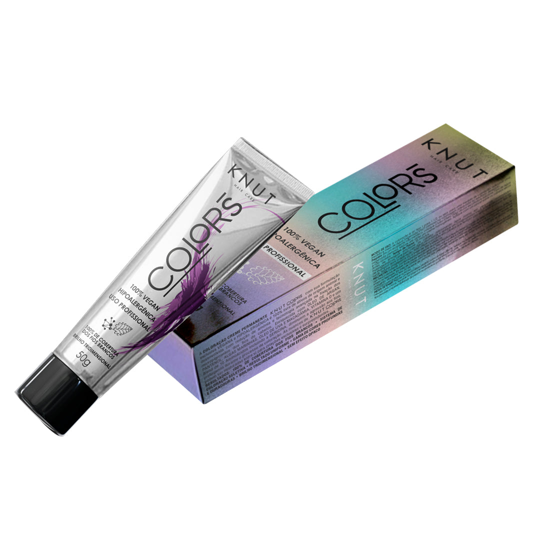 A Coloração Creme Permanente KNUT COLORS com sua formulação exclusiva VEGANA e HIPOALERGÊNICA é 100% livre de ativos de origem animal e desenvolvida com redução de amônia e tecnologia avançada na fixação dos micropigmentos dos fios de cabelos. Enriquecida com ÓLEO DE ARGAN, PANTENOL, ALGAS MARINHAS, ÓLEO DE UVA E MACADÂMIA, VITAMINA D e um Blend de 10 Aminoácidos incluindo a SERICINA, diminuem a agressão aos fios, protegendo durante o processo de coloração. As nuances de KNUT COLORS podem ser misturadas entre si para criações exclusivas e surpreendentes.